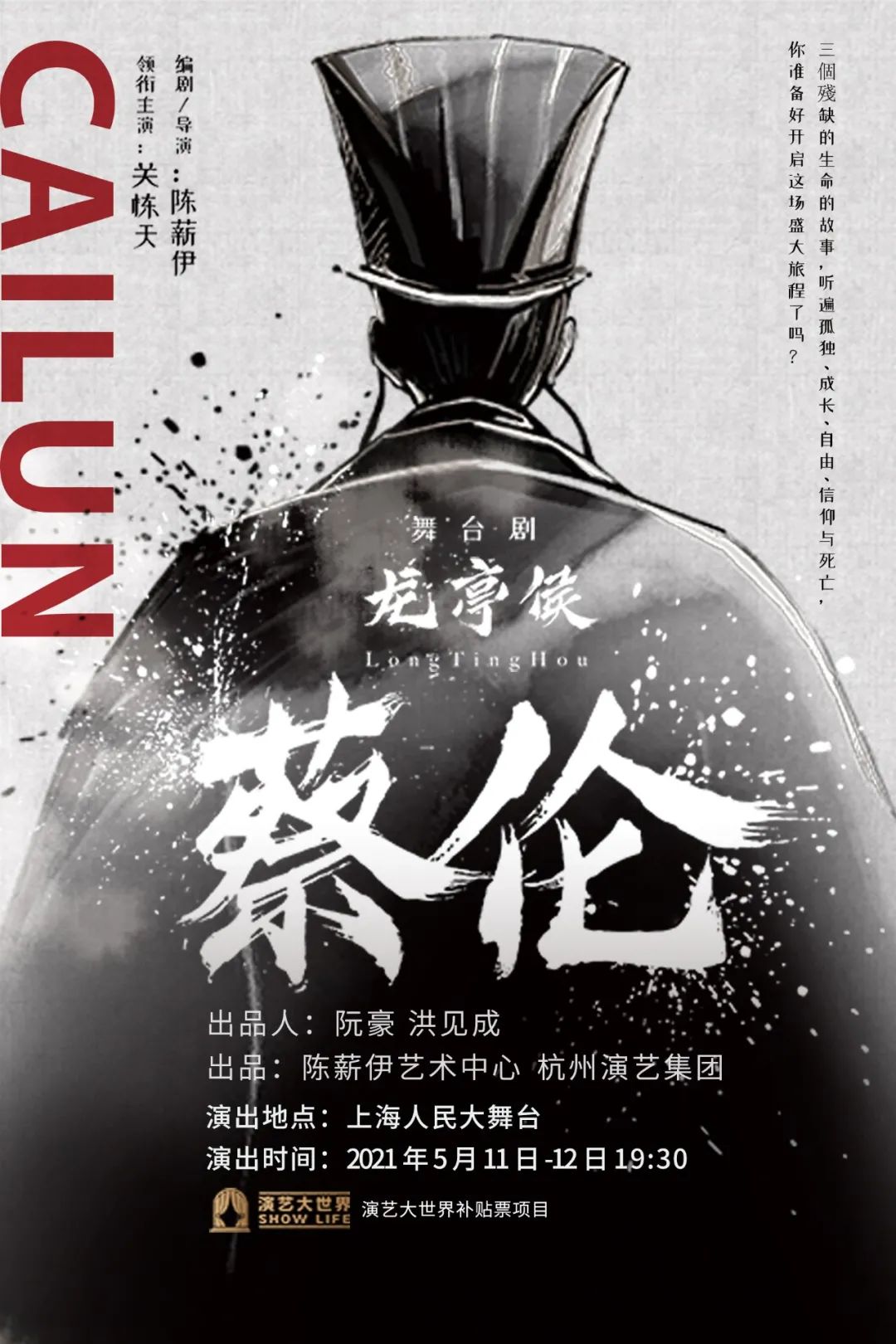 “莎士比亚的人文精神、京剧的表演程式、交响乐的三位一体,致敬蔡伦,荣辱与辉煌交错的一生!”