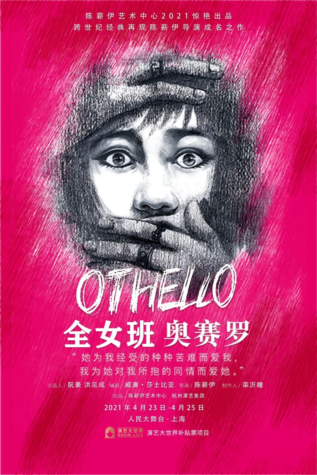 此番陈薪伊导演执导的《奥赛罗》以全女班阵容进行创排,剧中的男性角色也全部由女演员来扮演,“全女性演员的奥赛罗会有独特的美学,我的戏剧理想就是要把最美的东西像宗教一样传授给观众”。