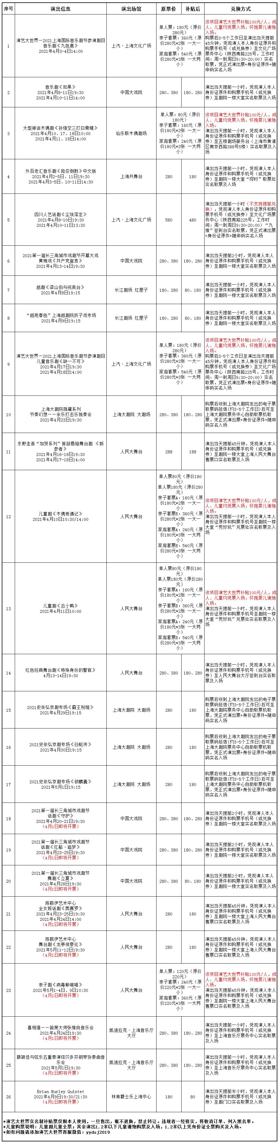 2021演艺大世界补贴票开票信息