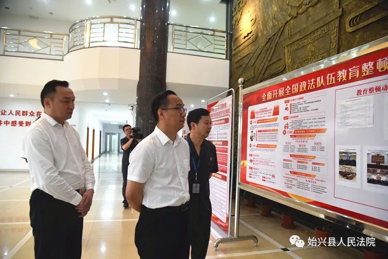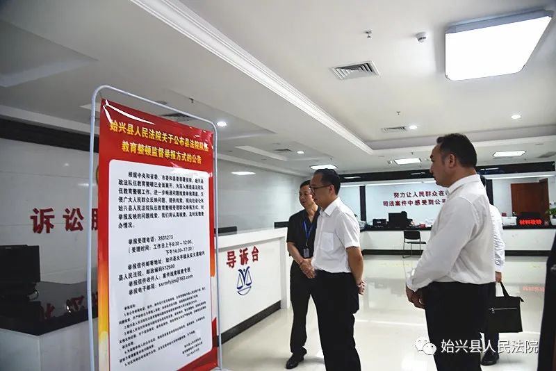 始兴县县委副书记、县长、县委政法队伍教育整顿工作领导小组第一副组长华关与县委常委、县委政法委书记、县委政法队伍教育整顿工作领导小组常务副组长兼办公室主任谭建华,在始兴法院党组书记、院长廖海岷的陪同下,一同走访了始兴法院立案庭(诉讼服务中心)、第一审判庭、法院队伍教育整顿工作领导小组办公室等地,深入了解了法院的人员结构、审判执行情况、队伍教育整顿工作以及存在的困难等。