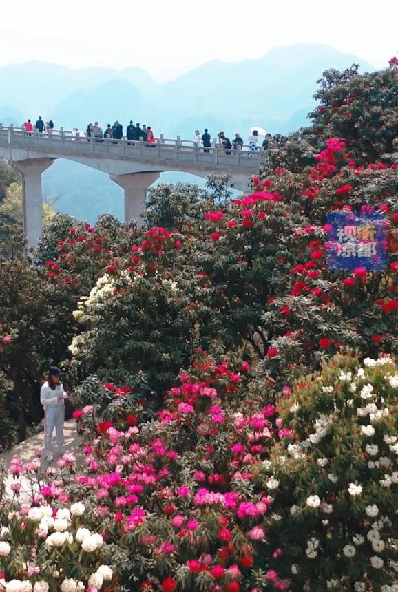四百余亩杜鹃花竞相绽放,开满各个山头,姹紫嫣红,香气袭人,远远望去,似朝霞燃烧,令人沉醉。