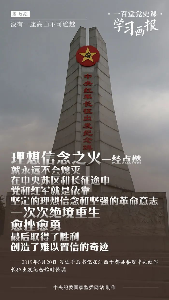 信仰的丰碑,指引共产党人继往开来。今天,引领着“中国号”巍巍巨轮的中国共产党,传承红色基因,牢记初心使命,开启全面建设社会主义现代化国家新征程,在新长征路上无惧无畏,奋勇前行!