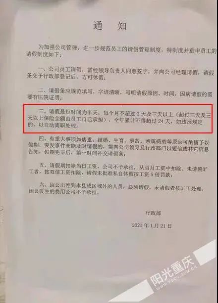 来自重庆江津的一家公司的王先生说,今年1月21日,公司突然贴出了这张通知,上面明文要求: