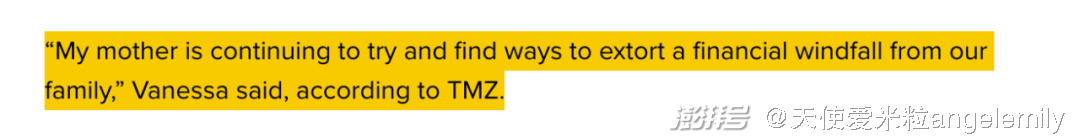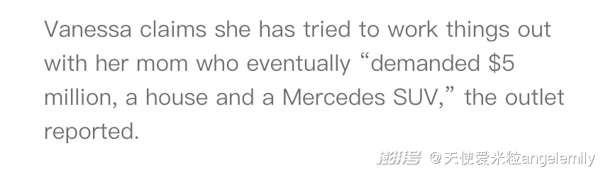 指控看得Vanessa无比懵逼,但这一次她不再是躲在丈夫身后的小女人,在这起诉讼被公开的几天后,凡妮莎在她的IG上隐晦发文,称自己被家人背叛了,很明显指向了她的母亲。