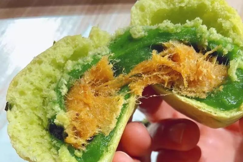 乔家栅有一款“限量款烤咸蛋黄青团”,仅限乔家栅跨界门店“乔咖啡”有售,它的最外层是香脆的面包,中间则是软软的青团皮,内馅是咸蛋黄肉松。