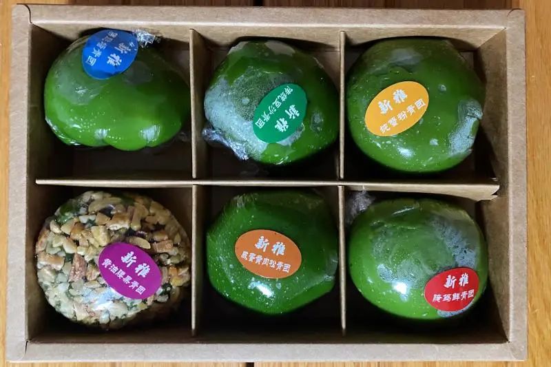 值得一提的是,新雅今年青团的口味很多,有款“全家福”可以把甜咸一网打尽,包括佛跳墙、豆沙、纯蟹粉、黄油腰果、咸蛋黄肉松、腌笃鲜六种口味,比较适合喜欢尝鲜的消费者。