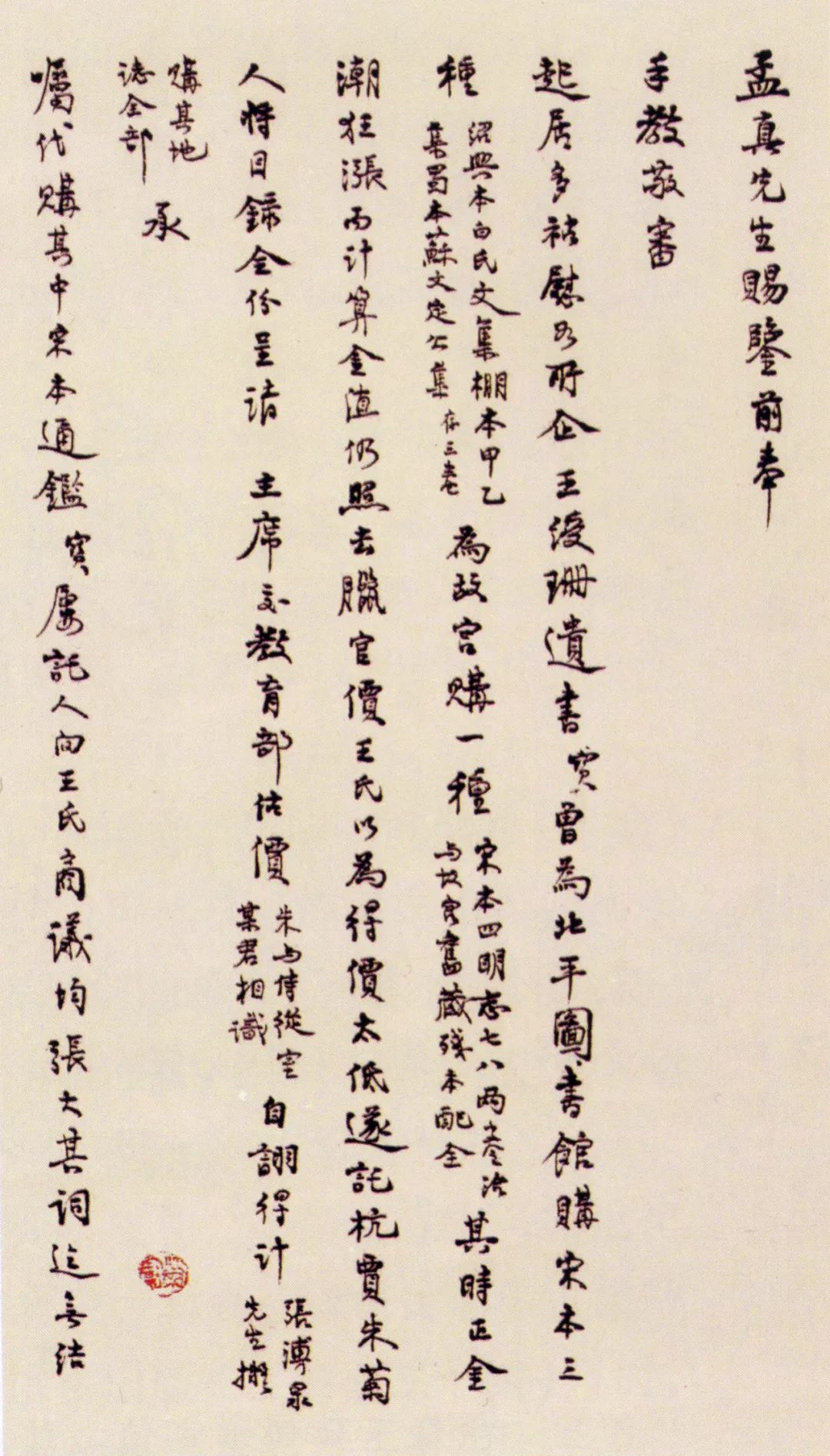 图 | 徐森玉致信傅斯年(孟真),信中谈及关于为北平图书馆购书一事