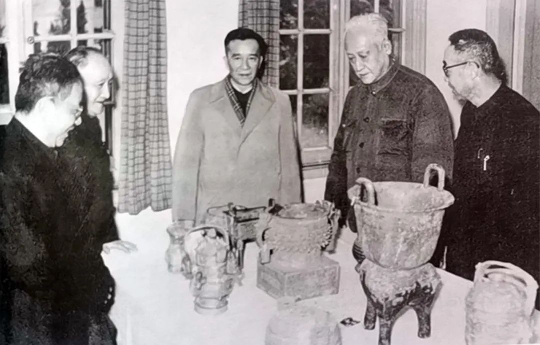 图 | 1996年4月30日,江泽民同志(左三)为上海博物馆题写“国之瑰宝”,左二为徐匡迪市长、左四为上海博物馆马承源馆长、左五为上海博物馆副馆长汪庆正