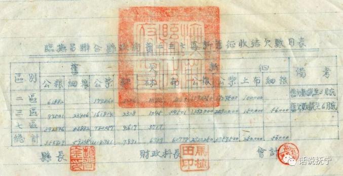 赵尚金签发的征收报表,这个时候“抚宁县政府”大印是这个样子的!