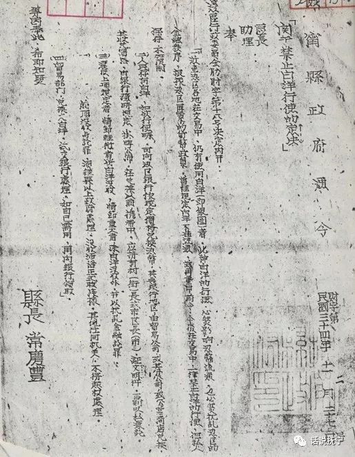1945年11月27日,县长常庆丰发布“关于禁止白洋使用的决定”。