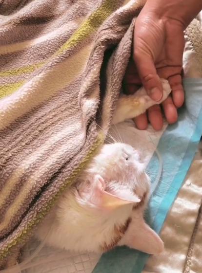 猫叔说:“立力真的是很乖很乖,最后没让我们给她排尿,自己尿了,给了自己一个完美的结局。”