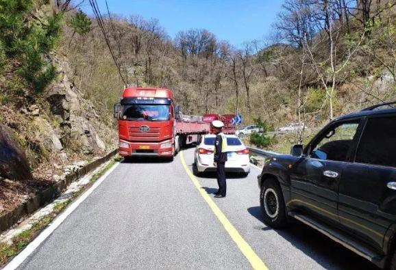 4月3日深夜,一辆牌照为浙E6**17号重型半挂货车夜晚因导航误导驶入省道447线天马自然保护区,驾驶员在4日天亮报警求助。接警后,金寨交警立即开展救援,民警对驾驶员进行有效的心理疏导后,经警车开道,给车辆轮毂洒水降温,填充弯道半径小的路段边沟,一路护送,经过两个多小时的努力终将该重型半挂货车引导至国道346线,驶向高速!
