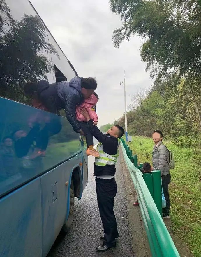 4月4日早上,六安交警高速三大队民警在济广高速巡逻时,发现一辆故障客车停在应急车道。经询问,该车电动门电动窗均出现故障,只有一个小窗可以打开。民警先把儿童抱上警车,随后将故障车辆拖离高速,消除安全隐患。