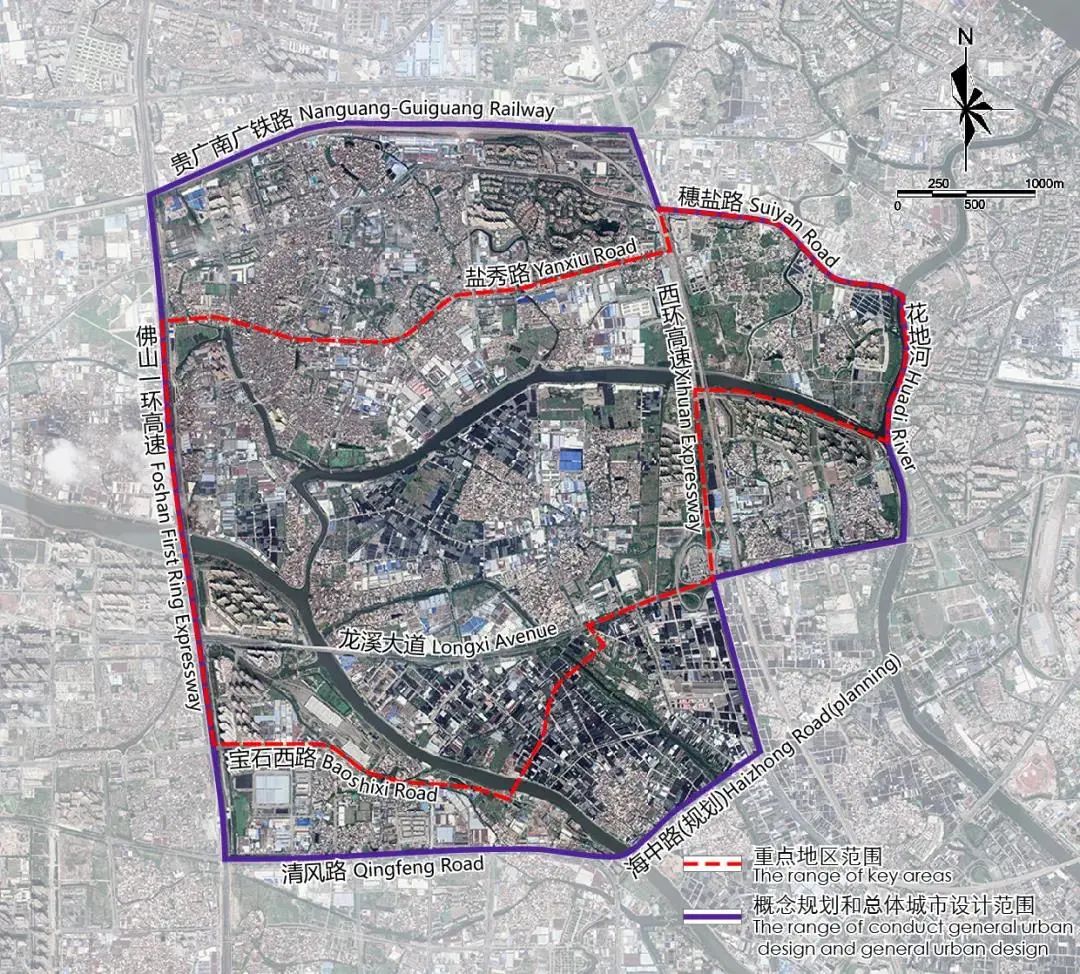 该工程位于广州荔湾五眼桥片区与佛山南海大沥镇海北片区的交界处,包含同心桥、广佛路节点改造和海北沿江路配套工程。