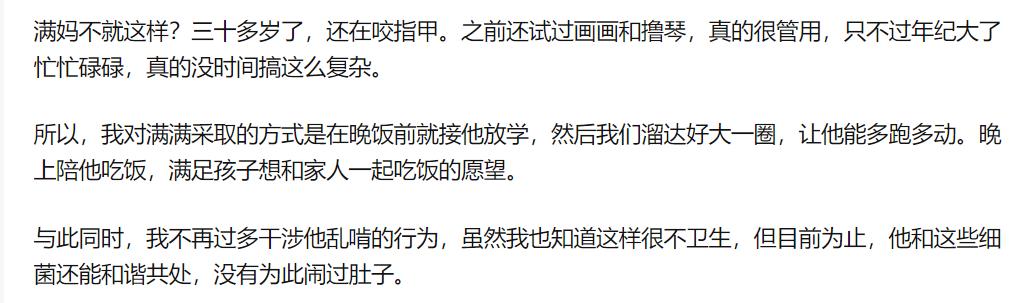 如果强行提醒自己不啃指甲,就又会感到脑袋嗡嗡作响,浑身难受。长大了依然戒不了啃指甲,还“传染”给了下一代,处理不好就容易产生一场教育危机。