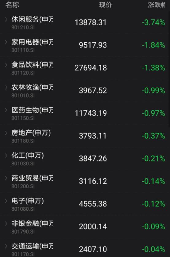 截至午间收盘,中信二级行业指数中,旅游及休闲板块以4.02%的跌幅位列倒数第一,成股份纷纷下挫。