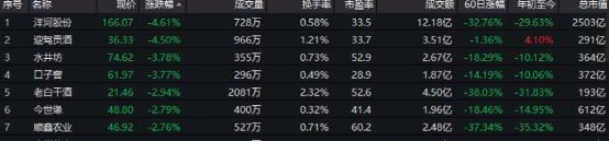 洋河股份、云南白药、海天味业、金龙鱼、贵州茅台、格力电器、宁德时代盘中最大跌幅超过2%,对指数形成压制。
