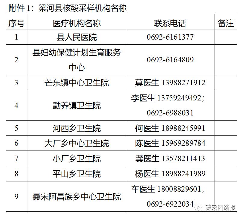 离开梁河人员,须持有健康码、行程码绿码,以及72小时内核酸检测阴性报告(或云南省健康码显示72小时内核酸检测阴性证明),在体温正常的情况下方可离开。对红码或黄码(有中高风险地区和境外旅居史及病例密切接触史)人员,严格实行集中隔离医学观察14天,开展3次核酸检测,费用自理。疫情风险等级可通过“国务院客户端”微信小程序进行查询。