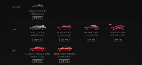不过,马自达在国内市场中一直不温不火,且产品布局比较简单。一汽马自达官网显示,目前有四款车型的展示,分别为MAZDA 6 ATENZA、MAZDA CX-4、MAZDA MX-5、MAZDA 6。另外长安马自达官网展示的四款车型分别为MAZDA CX-30、MAZDA 3昂克赛拉、MAZDA CX-5、MAZDA CX-8。