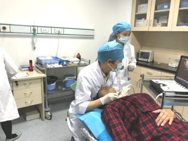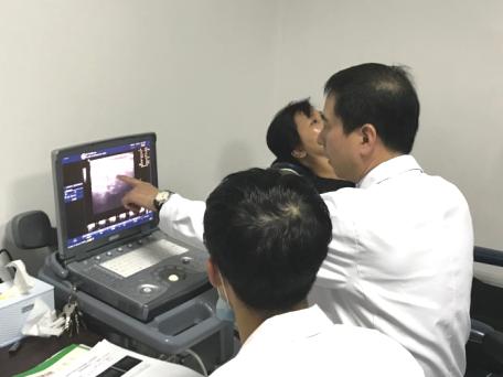 王鸿程在给患者做甲状腺结节细针穿刺检查