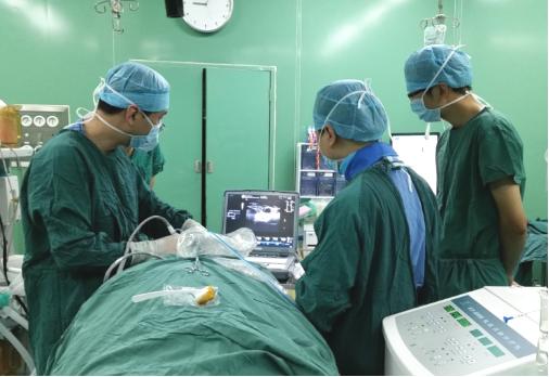 王鸿程(左一)及团队在给患者做甲状腺消融手术