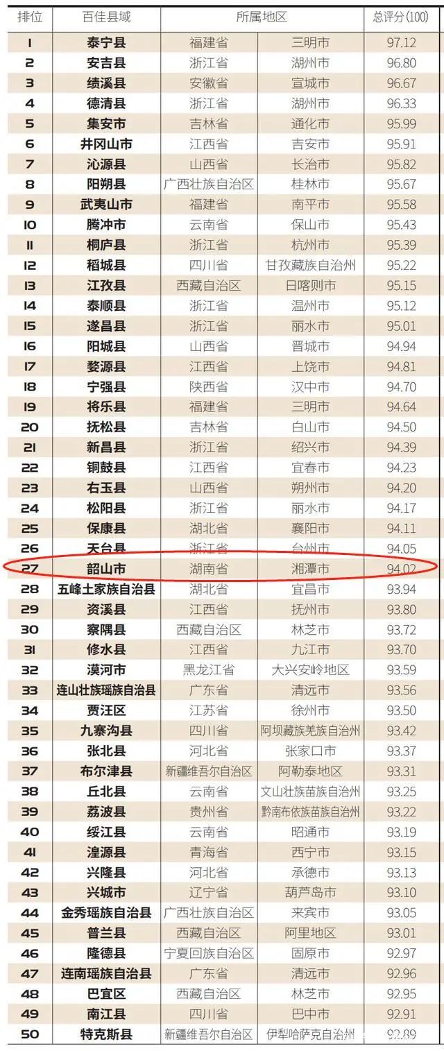 近日,“2021中国最美乡村百佳县市”榜单新鲜出炉,湖南省有5个县市区上榜,他们是:湘潭市韶山市(27位)、邵阳市城步苗族自治县(57位)、郴州市苏仙区(60位)、郴州市桂东县(91位)、湘西州永顺县(96位)。