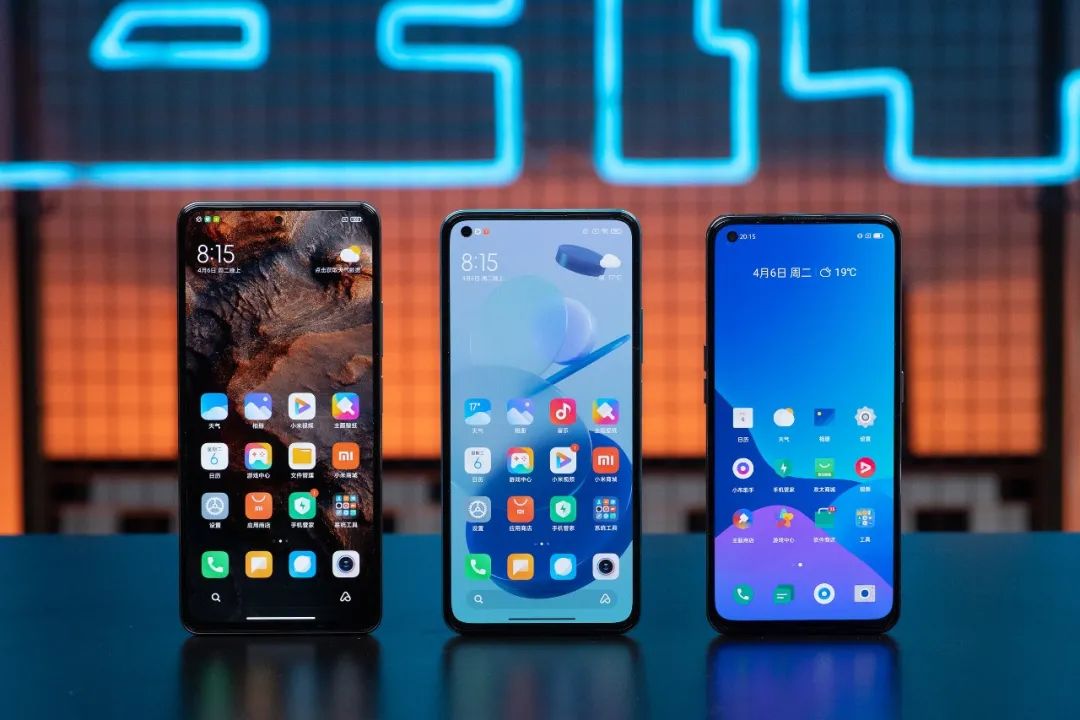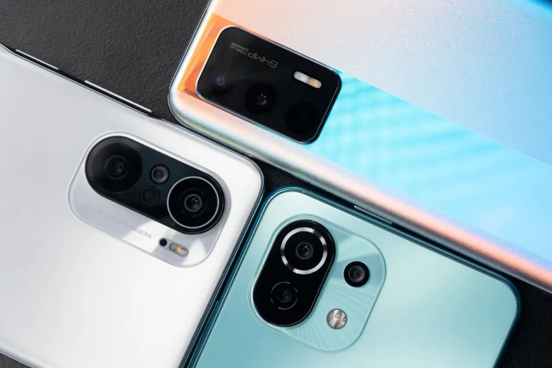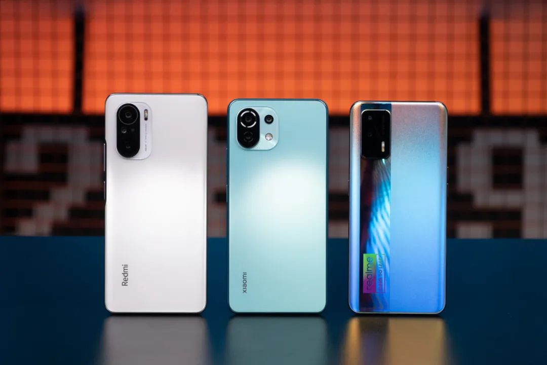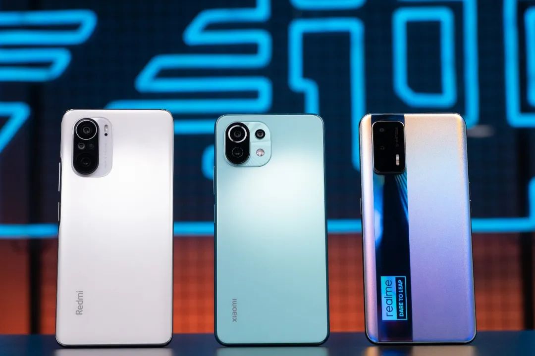 从左到右依次为红米 K40 、小米 11 青春版、realme GT Neo ▼