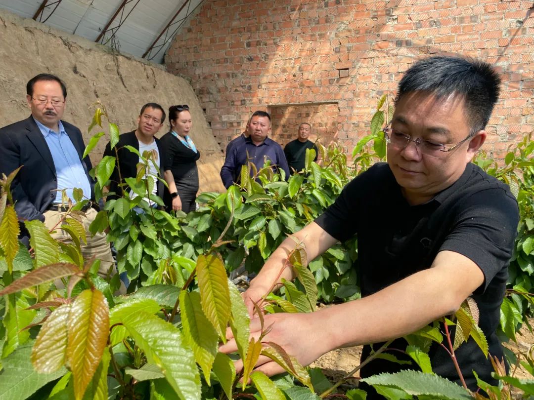 聚宝庄村党支部书记王万斌介绍了聚宝庄农牧业生产的情况,聚宝庄村现有大棚192栋、占地700亩;其中葡萄栽种89栋大棚、占地100亩,葡萄已经开花结果。种植香瓜28栋大棚、占地20亩,香瓜已挂果,一个月后可以上市。种植西红杮28栋大棚、占地20亩,已挂成果,20天后可上市销售。种植车厘子(樱桃)43栋大棚,占地100亩,车厘子果实挂满枝头,预计五·一假期可接待游客采摘,大幅度拉低了车厘子的市场价格。