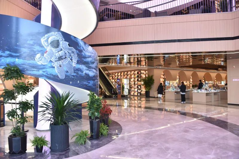今年年初,西安航天基地与西安新华书店合作,结合航天基地区域特色,打造了全市唯一星空主题新华书店——新华书店·航天书城店。这里以“探索”为主题,在四千余平方米空间中,结合“探月”“星辰大海”等区域特色。还以图书零售为依托,涉及文化、教育、运动、旅游、时尚、健康等领域,展示了“图书—教育,图书—时尚,图书—社交”的文化新零售体系,已成为区域内一张特色的文化名片。