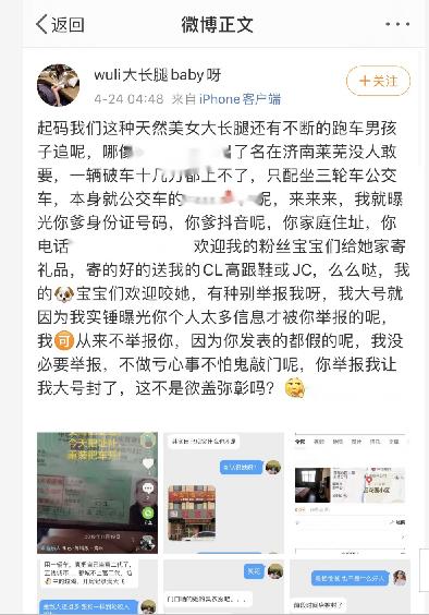 争论逐渐升级,吵到后面对方气急败坏,扒了我的照片发在自己微博上,造谣我是做小姐的站街女,并且人肉我的私人信息、骚扰我父母。我忍无可忍,整理了证据去找律师,把她告上法庭。