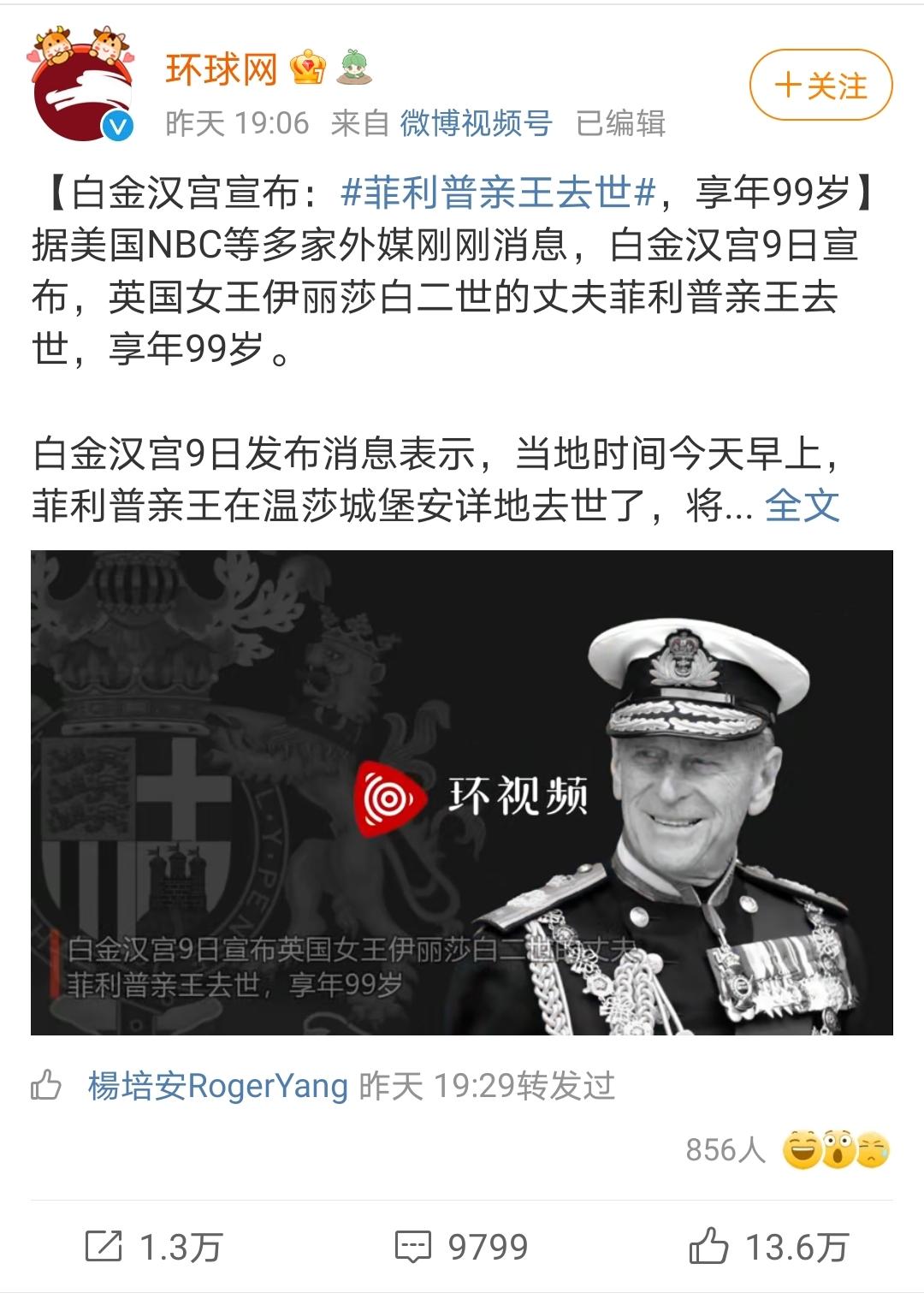 英国传来一则噩耗,还差两个月就年满百岁的菲利普亲王不幸去世。