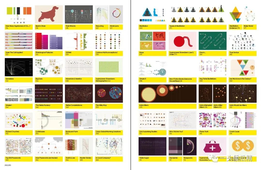 与此同时,市面上还有许多“图册”类的书籍,主要以印刷可视化作品为主。这类书的好处在于文字很少,因此看英文原版也不会有太大负担。同时,丰富的精选案例,也可以帮助你打开设计思路、激发可视化的想象力。