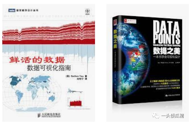 还有一些书笔者称之为“应用型教材”,主要关注如何实现可视化。例如Nathan Yau的两本书,中文分别译为“鲜活的数据”和“数据之美”。这两本书偏系统性的实操教材,包括如何处理数据、分析数据、如何使用工具画图等。