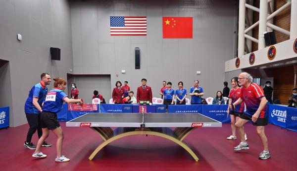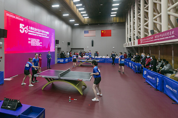 1971年4月10日,美国乒乓球代表团踏上中国土地,成为新中国成立后首批正式到访的美国客人。2021年4月10日,上海中国乒乓球博物馆冠军堂,26名中美乒乓球业余选手结伴组队,正在进行友谊赛。