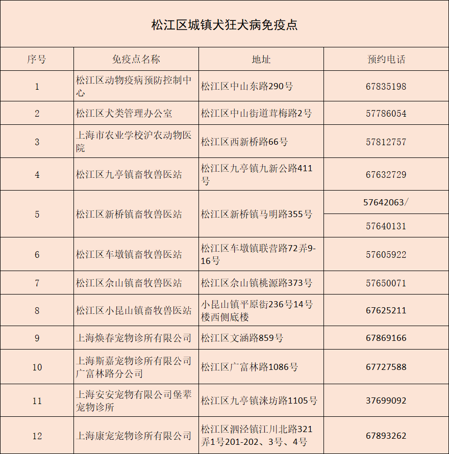 据了解,区动物疫病预防控制中心以各街镇畜牧兽医站作为狂犬免疫点的基础上,根据实际情况,适当增设社会宠物诊疗机构作为狂犬免疫点补充,截至目前,已认定5家宠物诊疗机构,共计12个城镇犬狂犬免疫点。
