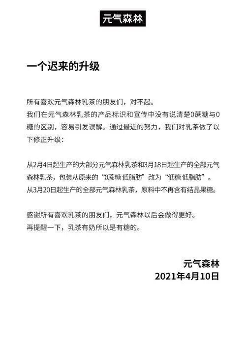 原标题:《元气森林因宣传「0蔗糖」道歉!这份道歉里没说出的真相,都在这里了》