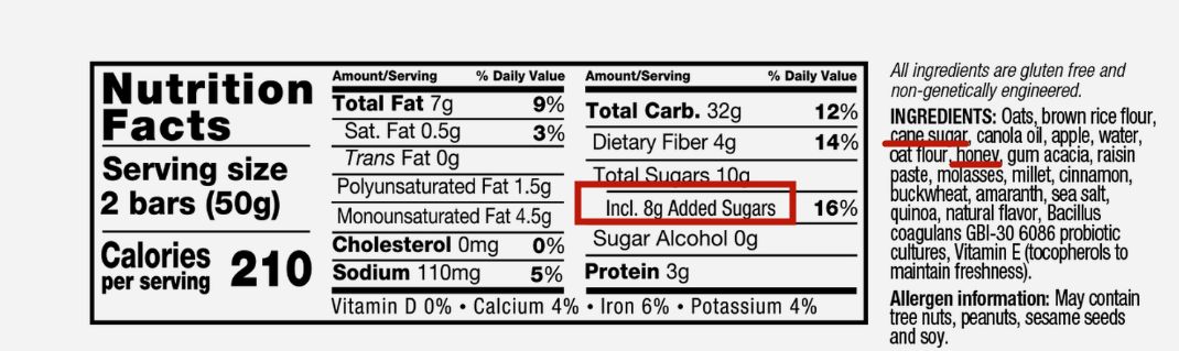 ▲ kind-bar谷物棒,加了蔗糖、蜂蜜。2根含8克糖。
