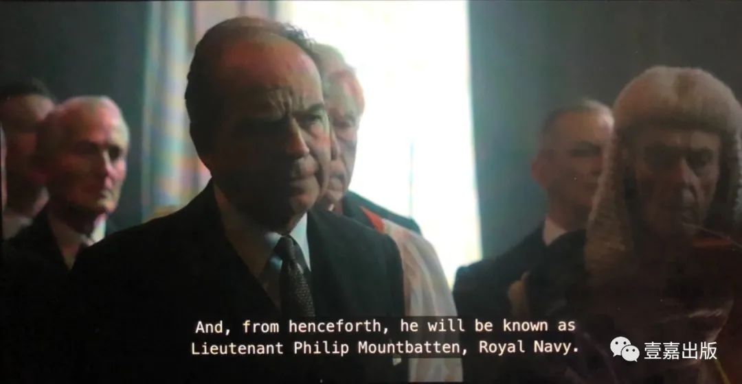 《王冠》的一开头,就是一场剥夺:那是菲利普和伊丽莎白女王(当时还是公主)婚礼前一天的一场特别仪式,在王宫中,众人的簇拥下,菲利普一边签署文件,一边听着某官员宣布:在获得英国国籍的同时,希腊和丹麦王子殿下放弃他的希腊国籍和所有外国爵位头衔。从现在起,他是皇家海军的菲利普·蒙巴顿上尉。
