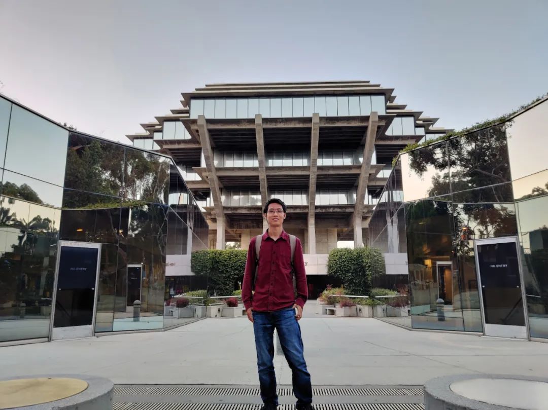 邓宇星在加州大学圣地亚哥分校图书馆前