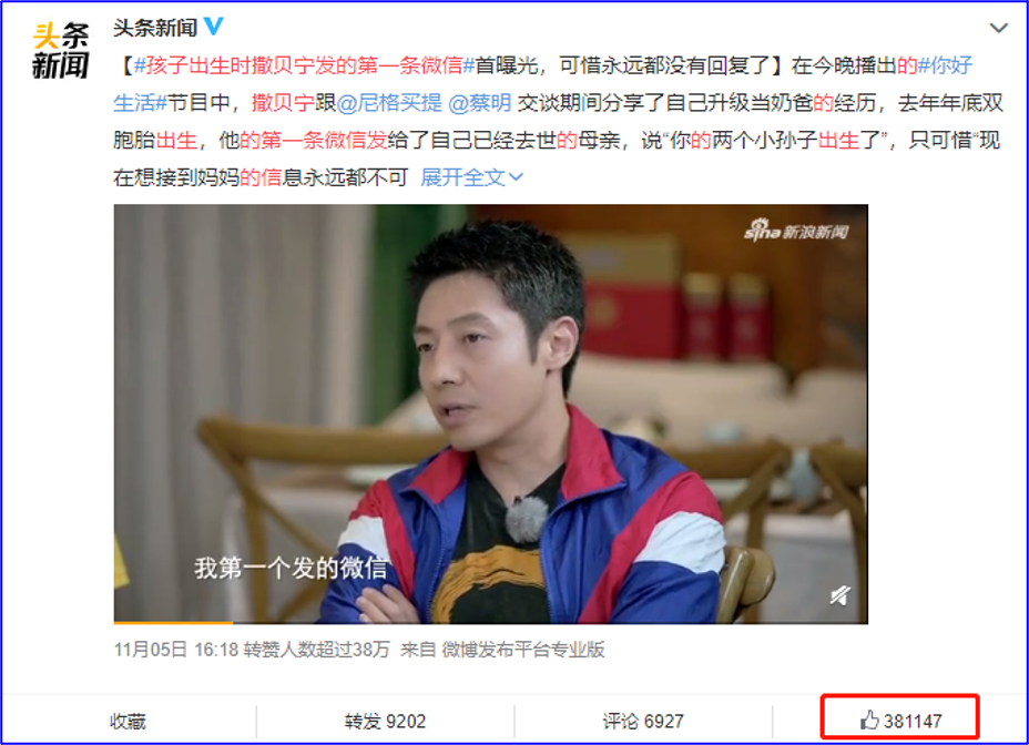 原来,去年,撒贝宁升级为爸爸时,第一条报喜微信发给了妈妈:“两个小家伙出生了,妈妈您当奶奶了。”