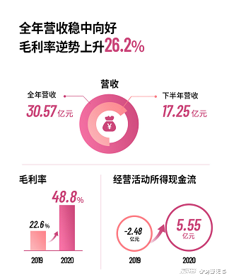相较于同期的亏损态势,去年下半年的经营盈利达到1325.4万元,经营活动所得现金流净额也由2019年负的2.48亿元增长至2020年的5.55亿元。
