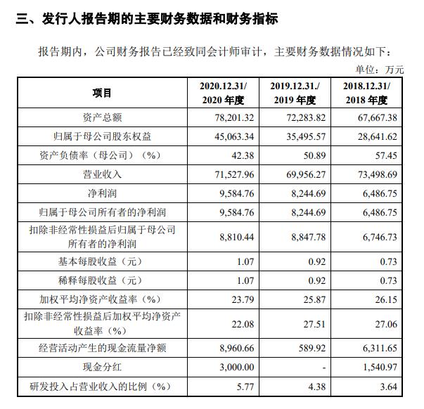 从青岛云路披露的数据看,2018年-2020年公司研发费用分别为2673.74万元、3061.14万元和4124.61万元,研发费用占营业收入的比例分别为3.64%、4.38%和5.77%,其中,2018年和2019年研发费用均不足5%。不过,青岛云路表示,公司最近三年累计研发投入9859.48万元,超过“最近三年累计研发投入金额≥6000万元”的科创属性评价标准。
