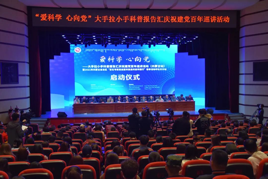 4月12日,由中国科协青少年科技中心、内蒙古科协主办,呼伦贝尔市科协承办的“爱科学 心向党——大手拉小手科普报告汇庆祝建党百年巡讲活动(内蒙古站)暨2021年内蒙古自治区‘百名专家走进盟市旗县科普传播行’春季活动呼伦贝尔站”启动仪式在呼伦贝尔学院举行。中国科学院院士、中科院国家天文台研究员、全国政协委员、中国科协常委、中国青少年科技辅导员协会理事长武向平,内蒙古科协主席赵吉,中国科协青少年科技中心副主任张振威,呼伦贝尔市人民政府副市长郝桂娟和大手拉小手科普报告汇有关专家出席启动仪式,呼伦贝尔学院近400名师生参加启动仪式。呼伦贝尔市科协主席吴铁宏主持启动仪式。