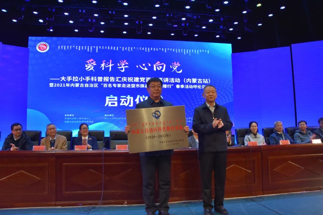 启动仪式上,赵吉为呼伦贝尔学院“内蒙古自治区科普教育基地”授牌,并宣布活动正式启动。