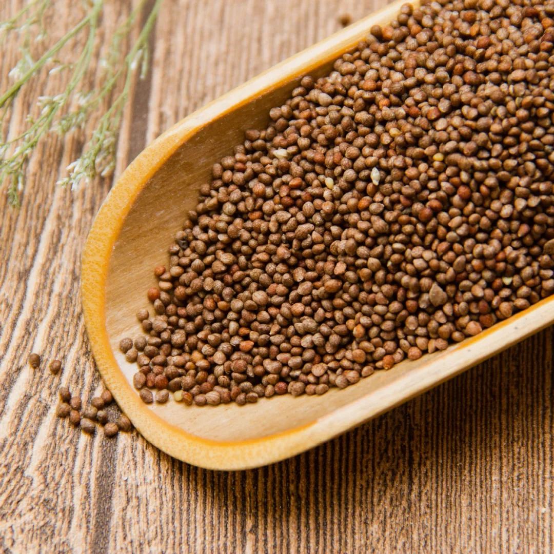 紫苏籽形状为小球形或者卵形颗粒状,籽粒直径大小在1~3 毫米之间,其籽粒表面颜色以灰褐色或灰棕色比较常见,表面有凸起的暗紫色网状纹路和圆形凸起的小点。籽皮具有薄、硬、脆的特点,比较容易压碎。籽中含油高达45%左右,油中α-亚麻酸含量非常高,大约占紫苏油总脂肪酸含量的63%,亚油酸占约16%,油酸为11%左右,是一种优质的保健油脂。紫苏籽中蛋白质含量可以达到25%左右,其蛋白质内氨基酸组成种类较其他植物更加齐全,含有18 种人体所需的氨基酸,其中赖氨酸、蛋氨酸的含量比高蛋白植物籽粒苋还要高出许多,还含人体所需的营养成分维生素和其他对人体有益的成分 ,如维生素 B1、维生素 B2、维生素 E、谷维素、甾醇、磷脂等。紫苏也是国家卫生部第一批批颁布的药食两用 60 种物品之一,它含有多种具有机体生理活性及功能特性的的化学成分。近几年来,紫苏所含有的特殊活性物质和营养成分已被科学家发现和应用,它已成为一种倍受世界广泛关注的多用途植物资源,经济价值很高。
