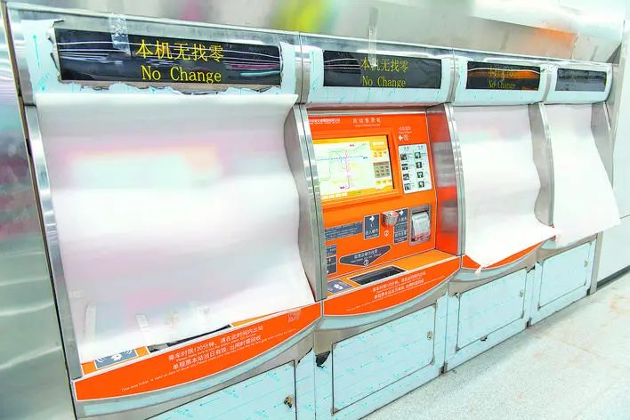 记者看到站厅层已经基本装修完毕,几台自助售票机也已经到位,上面已通电,显示出1、2、3号线和5号线南段等已开通线路的站点。在机器出票口的下方,还有两句温馨提示:乘车时限120分钟,请在此时间内出站。单程票本站当日有效,出闸时,需要回收。中文下面还有英文翻译。在负二层站台层,记者看到两侧的屏蔽门也安装到位。