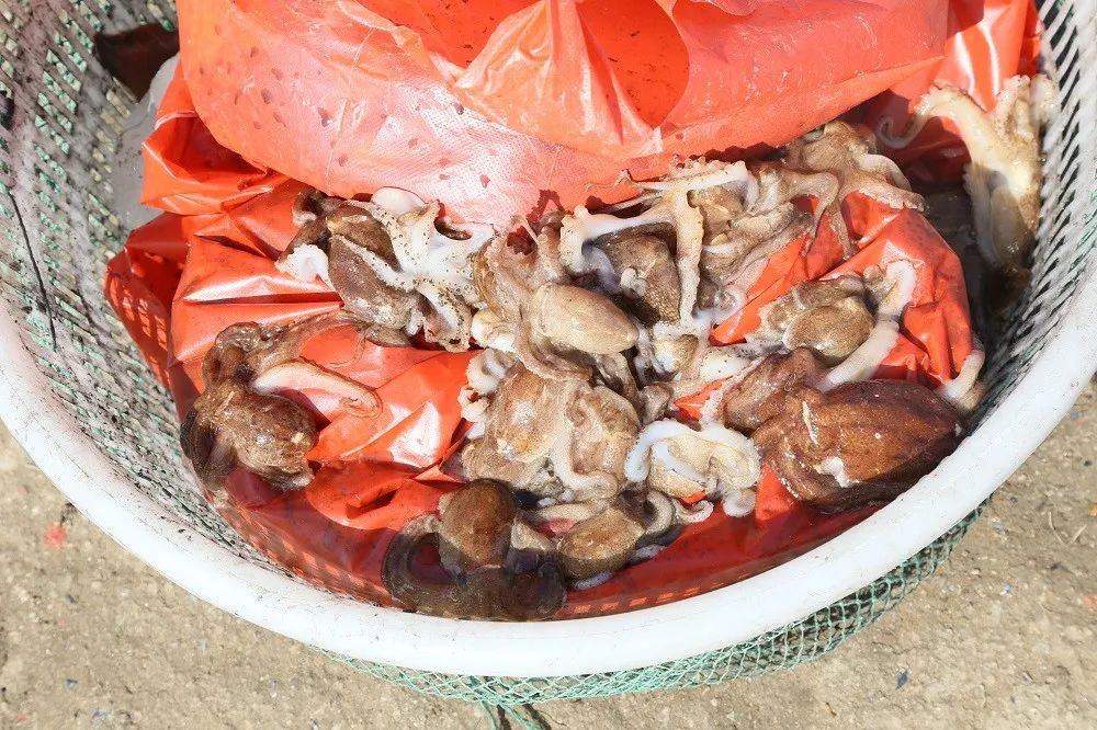 “这个八爪鱼好吓人呀!”在张家台海鲜码头,几位前来赶海的小姑娘见到活的八带吓得直往后退。