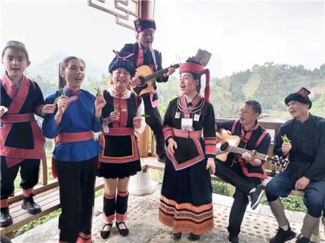 瑶族同胞在六段村茶园欢唱香哩歌。