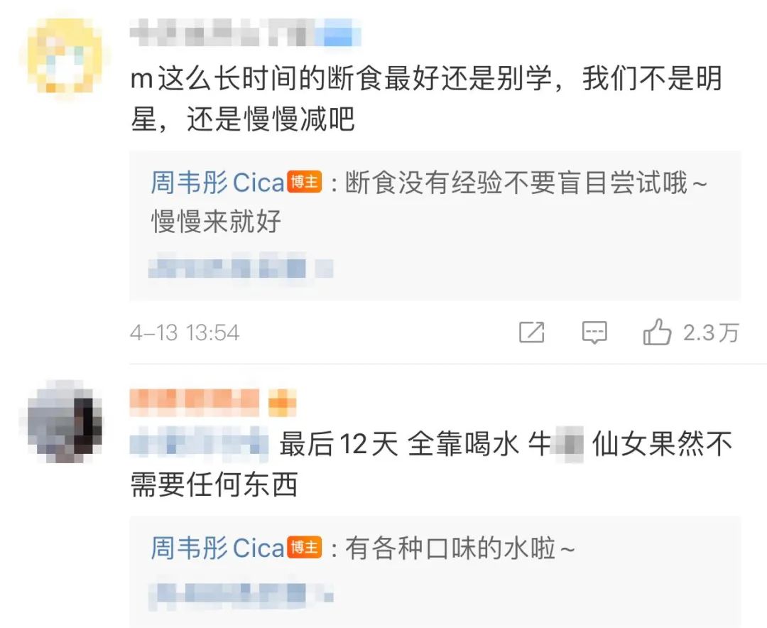 “周韦彤为减肥12天只喝水”,