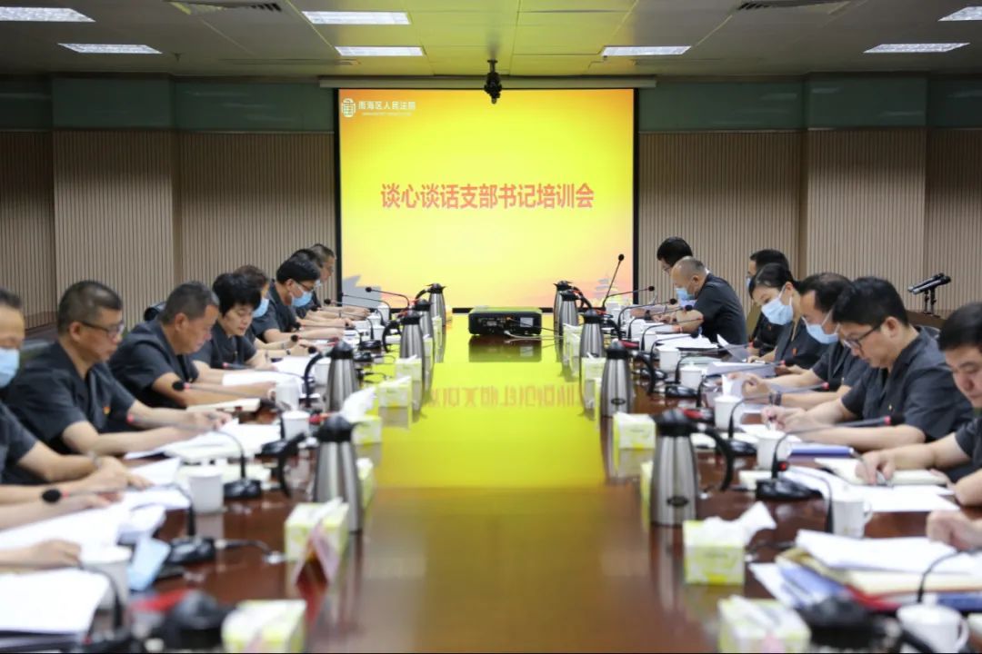 为切实提升谈心谈话质量,南海法院组织对全院各党支部书记进行集体交流,对宽严政策导向进行深入解读,对有关纪法文件复习巩固,对谈心谈话业务进行培训辅导,迅速推动全院全面铺开谈心谈话工作。